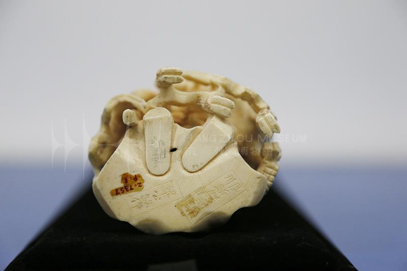 从底款来看此器为广州地区的铺号所制,质地致密光滑,雕工精湛细致,是清代牙雕的精品之作。广州是清代最重要的象牙贸易与牙雕制作中心,广作牙雕历史悠久,技艺精湛,不但是进奉朝廷的贡品,还大量外销欧美。